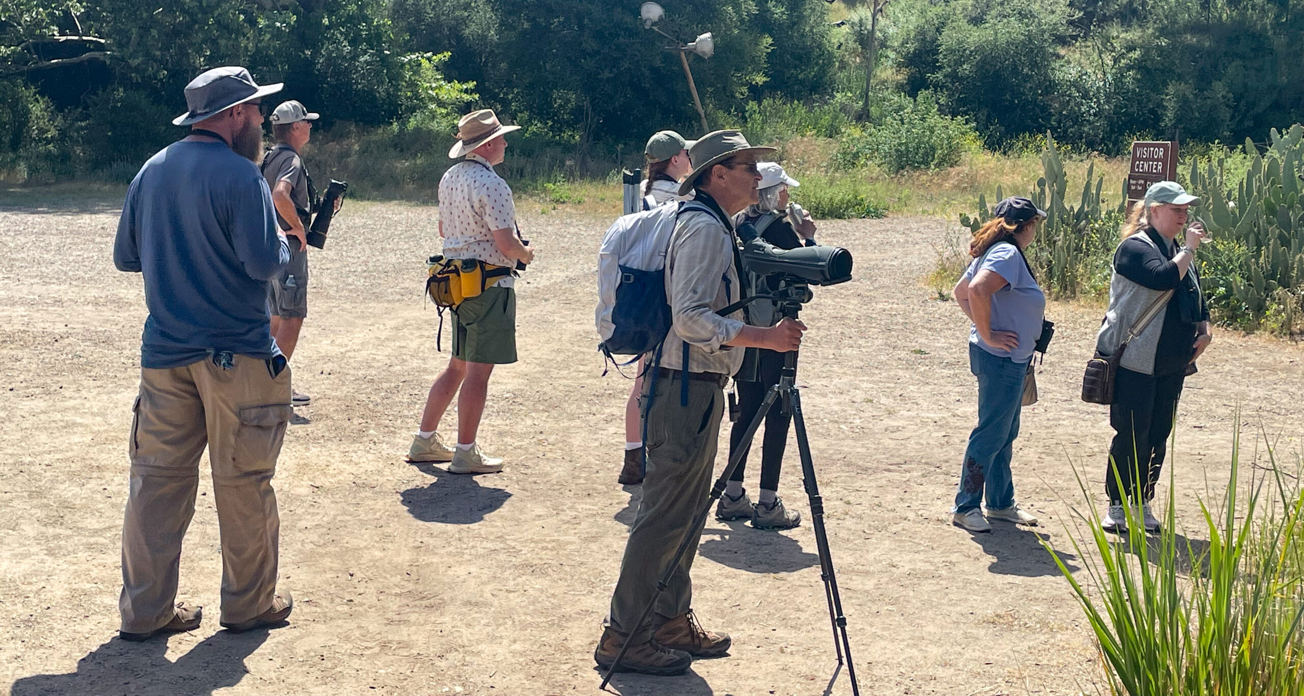 After introductions, announcements, and safety instructions, we got started. Avian activity was vigorous from the outset. Among our first sightings was a swarm of Cliff Swallows and a family of California Quail, ticked before we could hardly leave the parking lot! Acorn Woodpecker, Ash-throated Flycatcher and California Scrub-Jay followed in rapid succession.