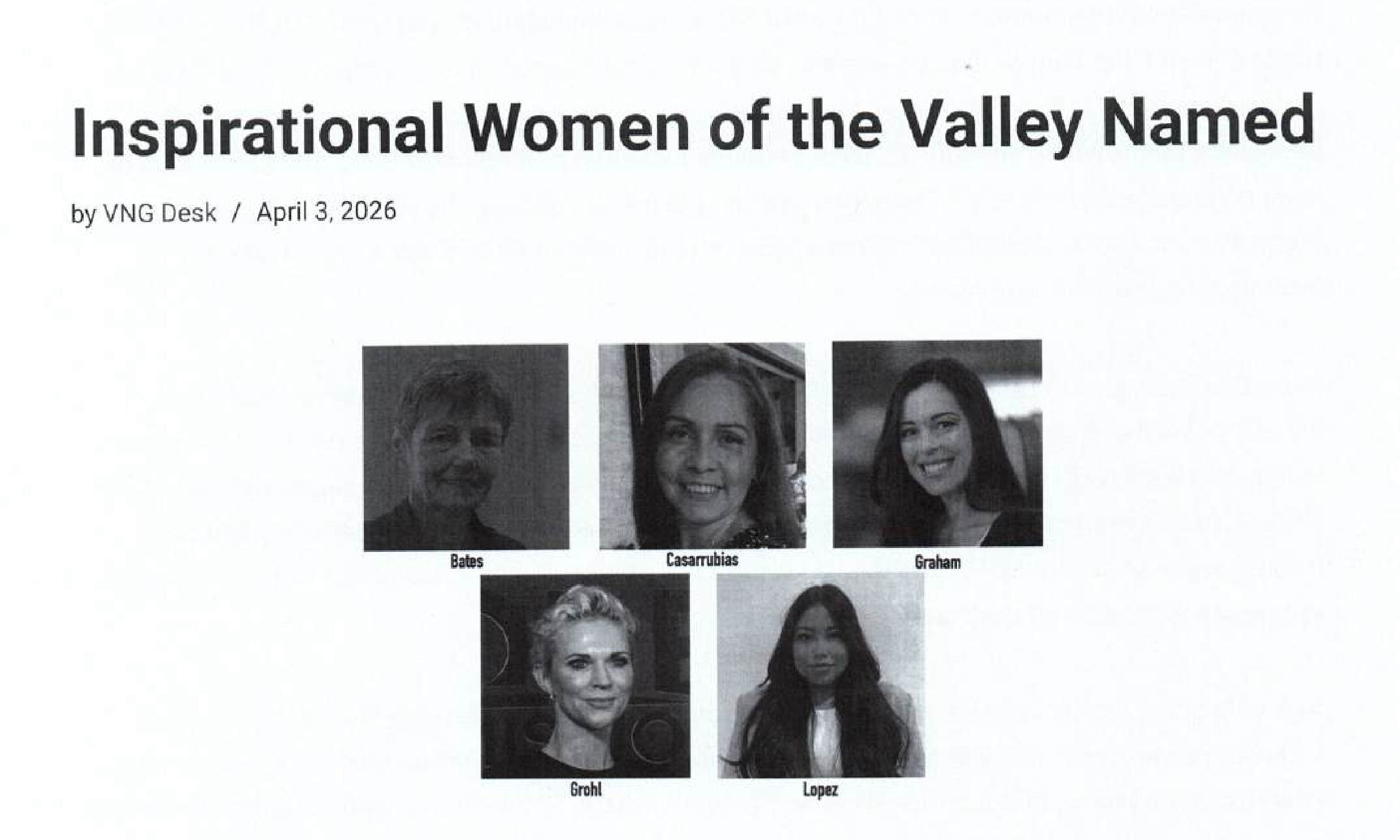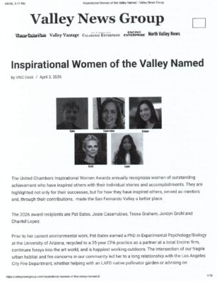 SFVAS is proud to announce that our very own Pat Bates has been honored as an Inspirational Woman of the San Fernando Valley for 2026!