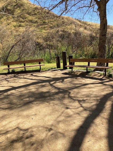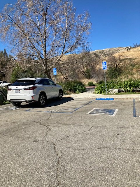 The outing is about 2/3 accessible, with some travel on manicured lawn. Halfway through, we hike off, up hillside trails. Those who don’t wish to hike are afforded benches in shade for waiting, or they can end their outing there. When we get back , the journey continues back to the beginning by a different route.